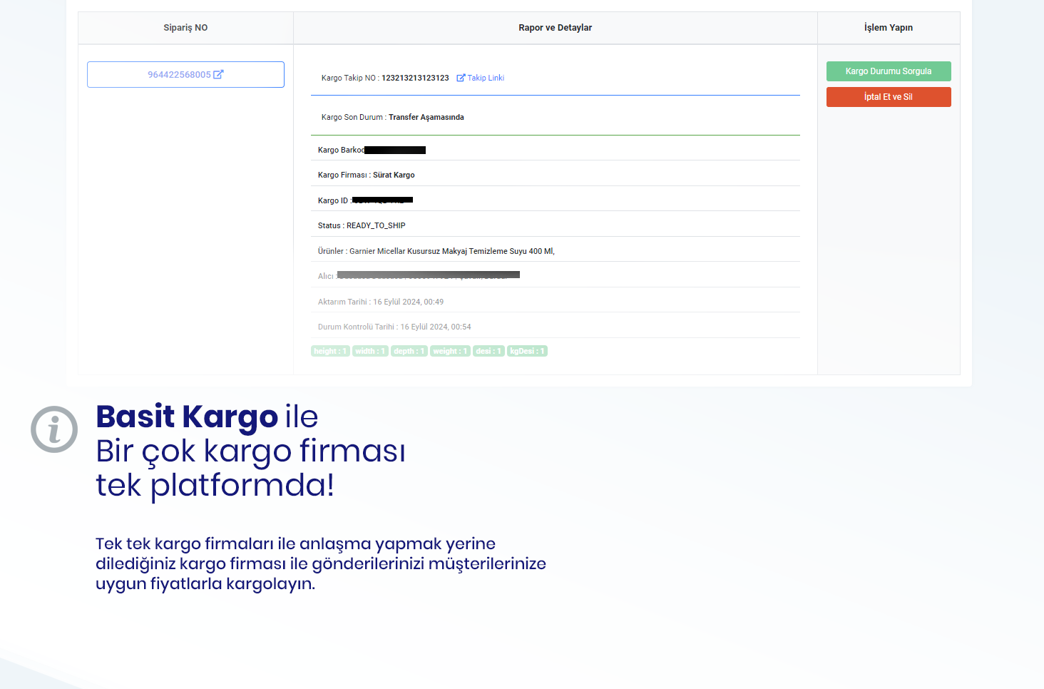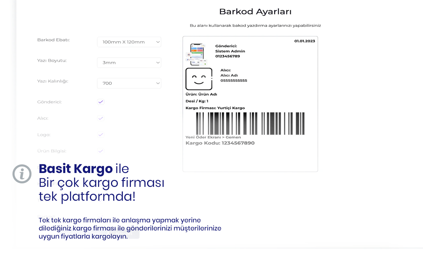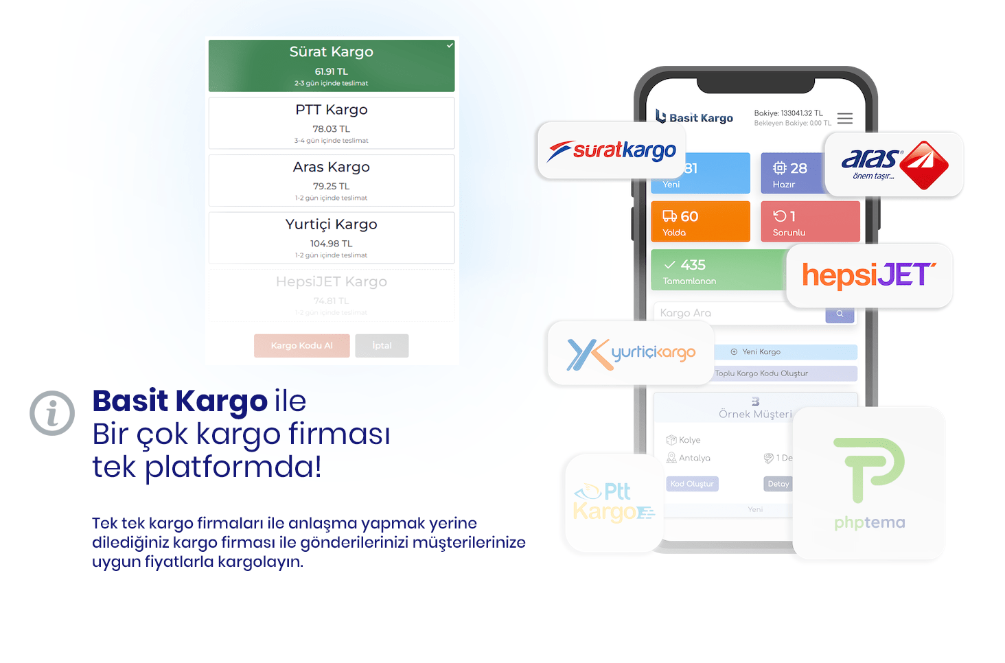 Tek tek kargo firmaları ile anlaşma yapmak yerine dilediğiniz kargo firmalarını Basit Kargo tek platformda sizlere sunuyor.